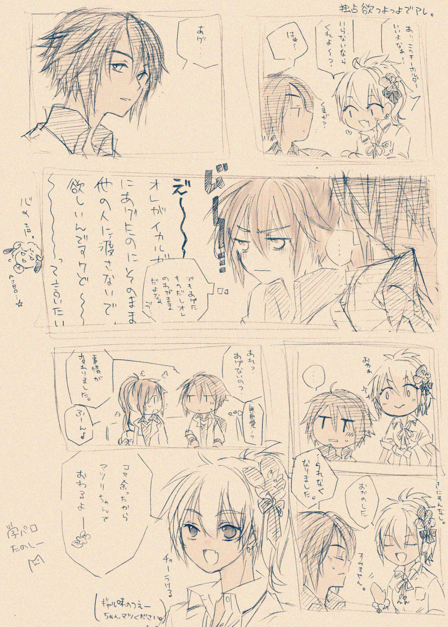 正直1周年を目安に熱が落ち着くかな〜と思ってたんですけど、学パロきてこの感じになって「あ、これ多分普通に萌えてるわ」ってさとりました。来年も一次創作は眠ってるかもしれんがまぁ萌えはアツい時が旬なので萌えてるうちはわあわあ騒ぎます。そんなわあわあ騒いでた漫画がコチラ。清書したらログに放り投げよう。